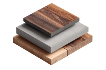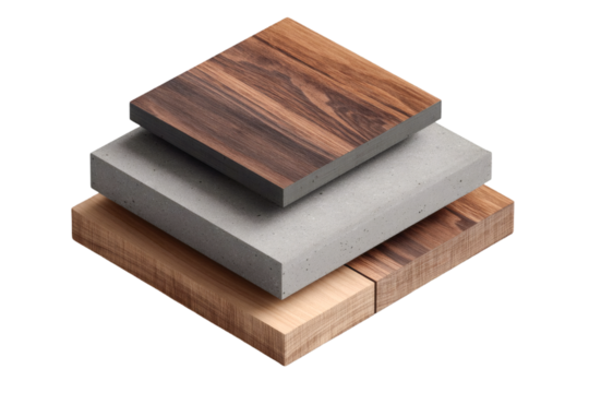 Elegant stacked material samples showcasing wood and concrete textures for modern design