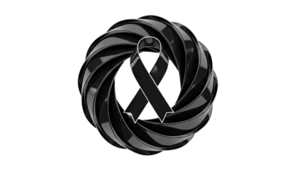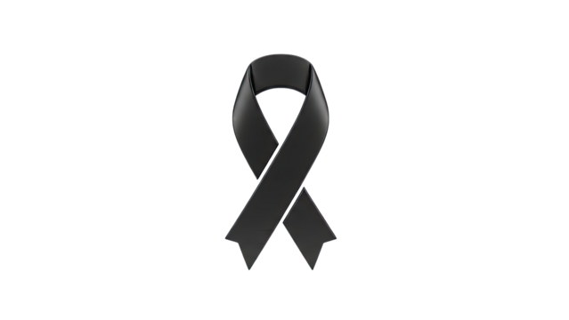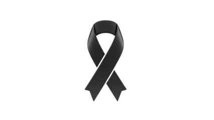 Elegant Black Awareness Ribbon Symbol of Mourning Solidarity and Remembrance Isolated on a Stark transparent Background