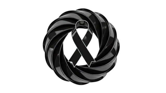Black mourning ribbon symbolizing grief remembrance awareness