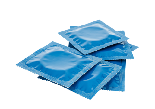Two types of condoms isolated on transparent background, promoting safe sex and disease prevention