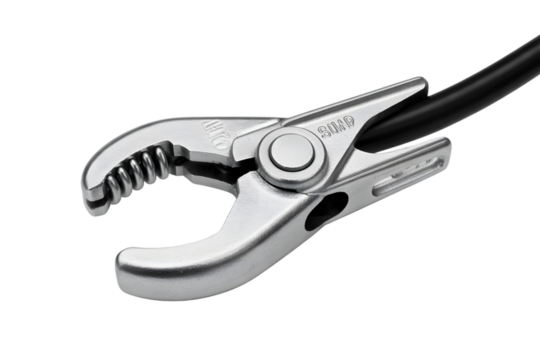 Copper busbar connecting electrical power conducting system isolated on solid white background Png Form