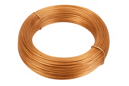 Gleaming copper wire coil showcasing metallic texture, prepared for electrical engineering, manufacturing, and crafting needs