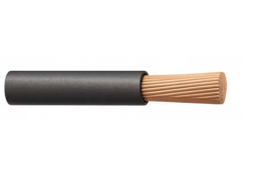 Electrical copper wire showing stranded core and black insulation, representing energy, conductivity, and connection