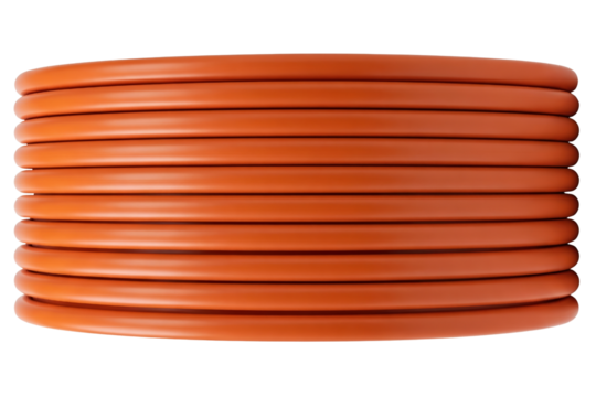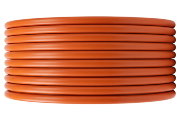 Coiled bright orange plastic industrial cable isolated on a transparent background