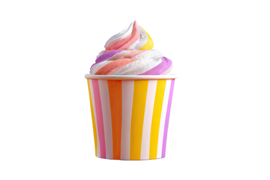 Colorful striped cup of ice cream