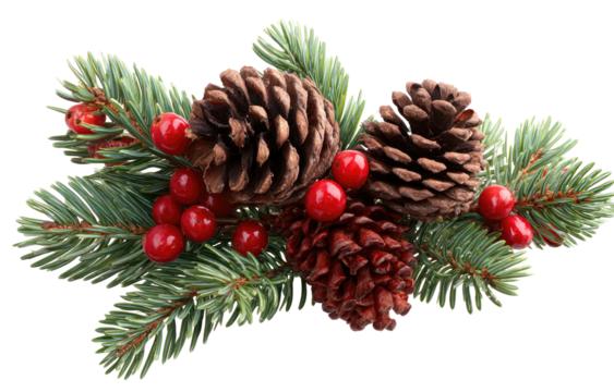 Christmas pine cone and berry festive decoration arrangement.