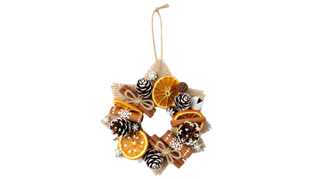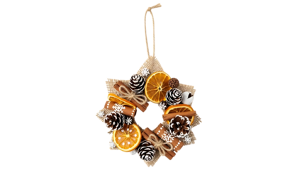 Star shaped dried orange slice and pine cone Christmas wreath