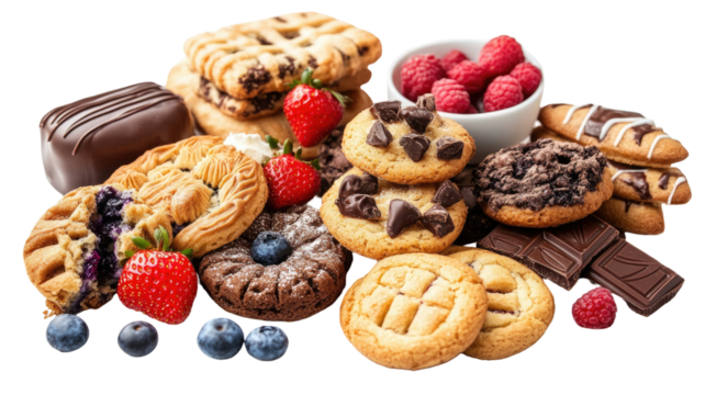 Set of various delicious sweet desserts isolated on a transparent background PNG