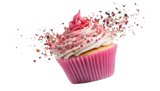 Cheerful cupcake clipart with pink frosting on transparent background