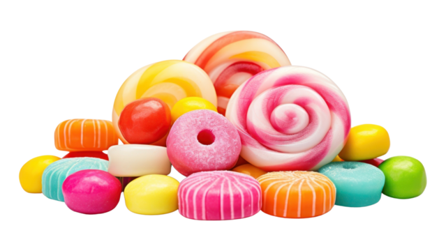 Colorful Confectionery Candy Falling in the Air on Transparent Background