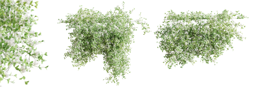 Set of Trachelospermum Jasminoides creeper plant,  vol. 2, isolated on transparent background. 3D render.