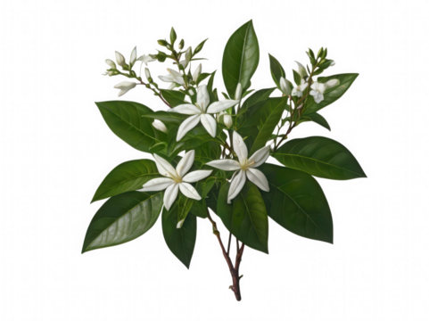 Isolated jasmine flower cluster, fragrance, tropical, star-shaped petals, soft and pure bloom