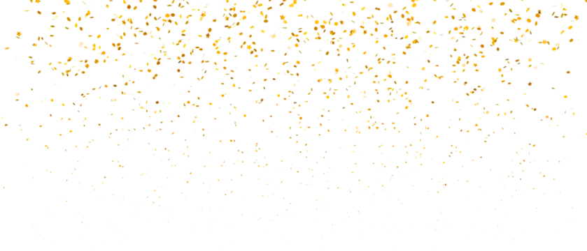 Golden confetti falling down isolated on transparent background.