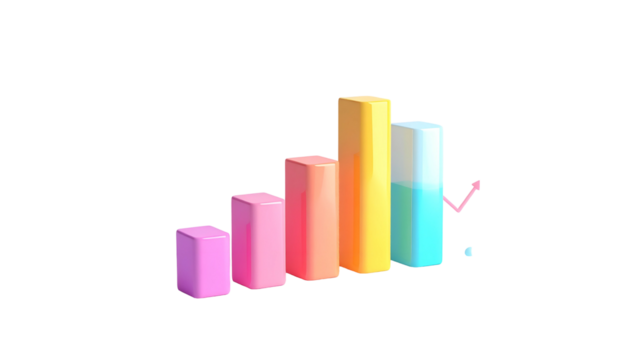 3D bar graph with arm, showing increasing data trend on black backdrop