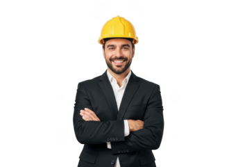 A confident African American businessman in a suit and tie, standing with his arms crossed, against a white background.