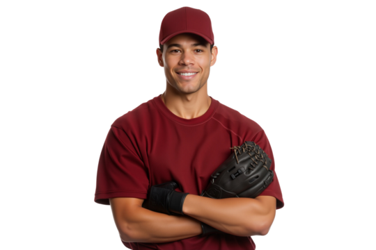 Confident baseball player with arms crossed smiling at the camera