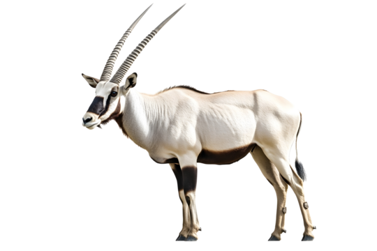 Wild Arabian Oryx leucoryxOryx gazella or gemsbok isolated on white background large antelope in nature habitat Wild animals in the savannah Animal wit