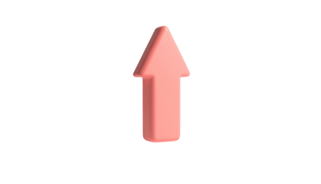 A three-dimensional, salmon-colored arrow pointing upwards against a black background