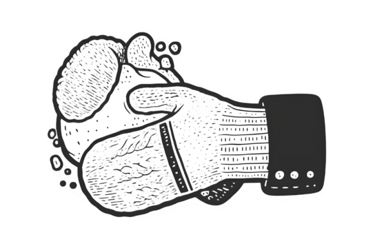 Black and white sketch illustration of a business handshake deal or partnership agreement in vintage engraving style.