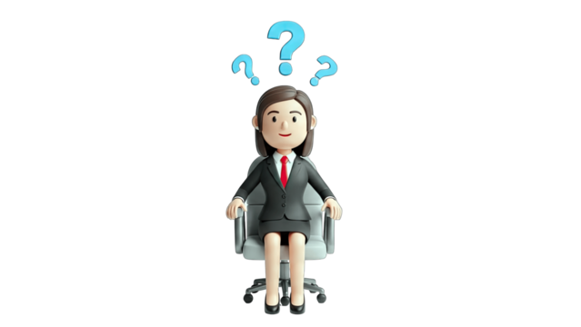 Woman holding smartphone with puzzled expression, sketch-style question marks floating around, isolated on transparent background, concept of confusion