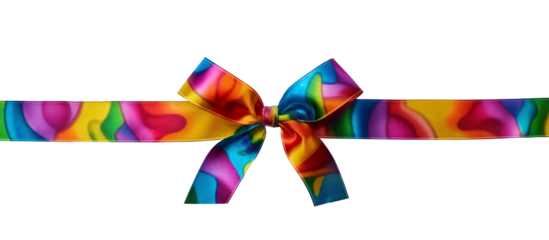 A colorful ribbon with a bow is displayed on a white background. Long bow for gift decoration