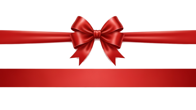 Red Ribbon Bow Isolated on White - Gift, Present, Celebration Transparent Background