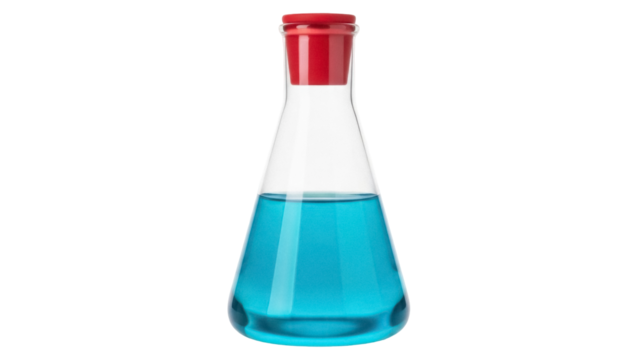 Erlenmeyer Flask Containing Blue Liquid on Transparent Background