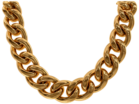 Thick Gold Chain Necklace, Front View, Luxury Fashion Style, Isolated on Transparent Background