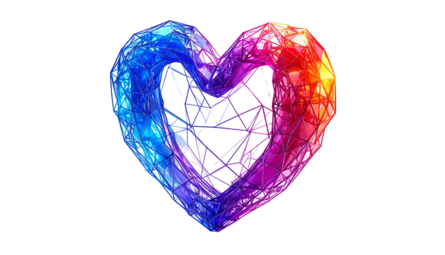 A vibrant, geometric heart, transitioning from blue to red, on black
