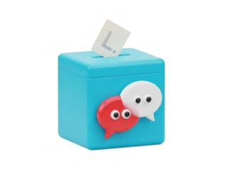 Teal box with speech bubbles on the side for communication and voting isolated on transparent background