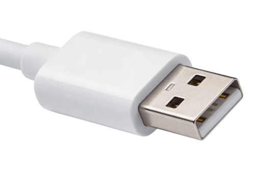 Close-Up of a White USB Connector on a Transparent Background Showcasing Detailed Design Elements
