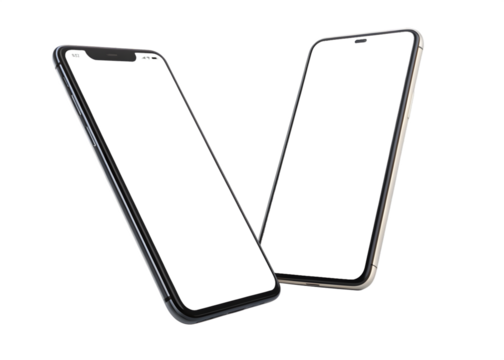 Modern smartphone with blank white screen isolated on a solid black background for creative design and mockup purposes