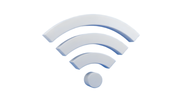 White wifi symbol with curved lines on clean background, representing internet connectivity