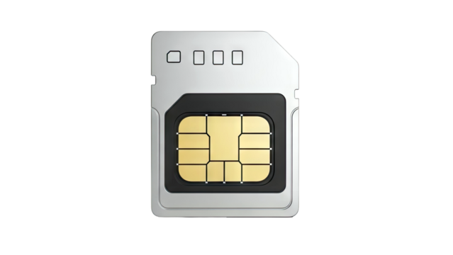 Close-up of a SIM card with golden chip on a white background