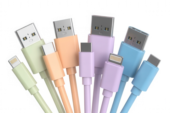 Cable Connectivity: A close-up shot of a pristine white USB cable with Lightning connectors showcases sleek design and seamless charging capabilities.
