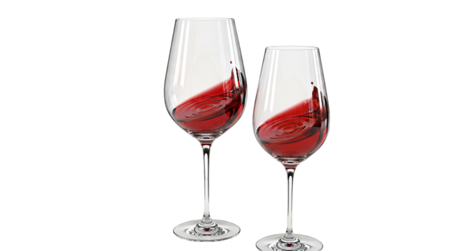 Red wine swirling in two elegant glasses on black background Ideal for luxury celebrations fine dining event