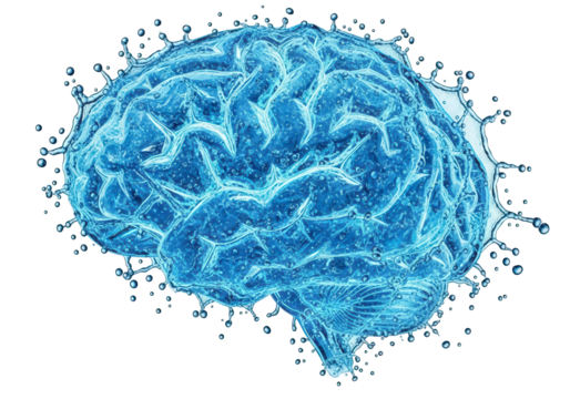 Transparent brain with floating maze cubes symbolizing complex consciousness