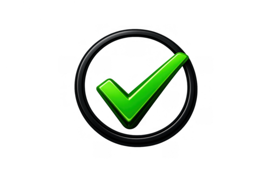 Green check mark in black circle, representing completion, success, approval, validation, and confirmation on transparent background