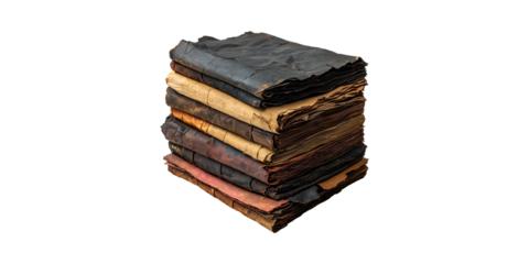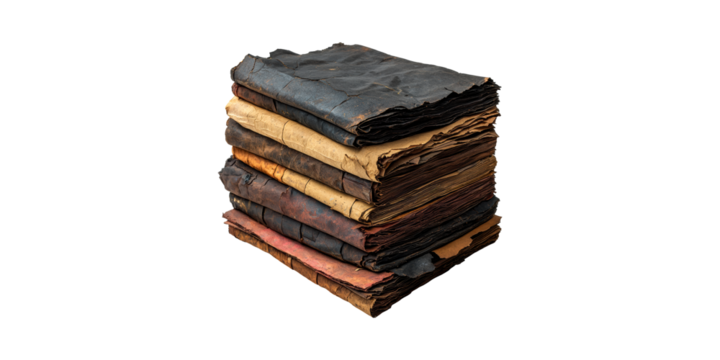 Stack Of Aged And Weathered Papers. Historical Documents And Archival Preservation Isolated On Transparent Background