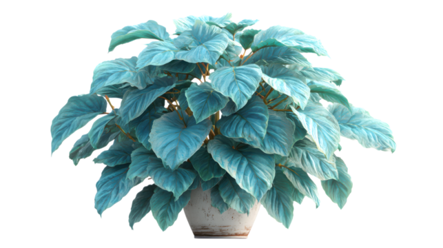 Stunning blue philodendron plant in a rustic pot adds a touch of modern elegance to any interior design project or botanical collection, isolated on transparent backgrounded