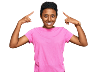 Young african american woman wearing casual clothes smiling pointing to head with both hands finger, great idea or thought, good memory