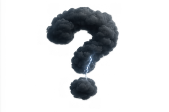 Question mark made from dark storm clouds with lightning bolt, symbolizing doubt, uncertainty, and big problems