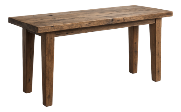 Reclaimed wood dining console table with a distressed look, fitting for an eclectic bohemian home.