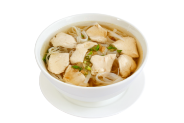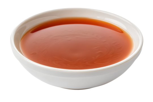 Stout broth of fish and sea food in the bowl top view isolated transparent png