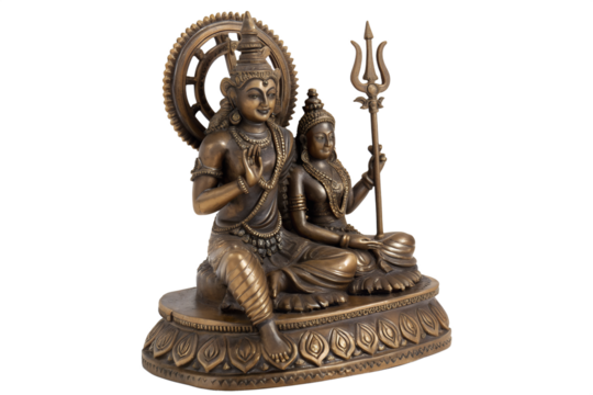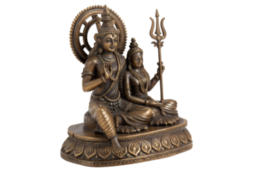 Exquisite handcrafted bronze idol of Lord Shiva and his consort Parvati, a traditional vintage Hindu deity statue on an ornate pedestal