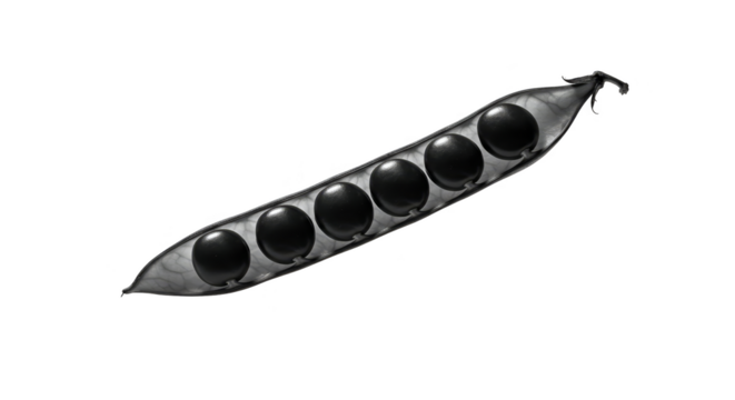 Isolated Photo Macro of Black Pea Pod with Six Peas Detailed Texture