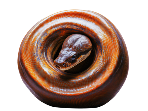 Coiled ball python captured in studio setting high-resolution wildlife photography serene environment close-up perspective isolated on transparent background