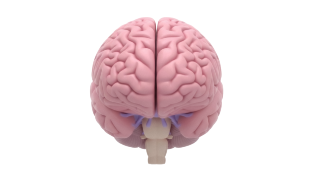 Human brain model isolated PNG, anatomical representation of the cerebrum and brainstem for medical education and neuroscience studies
