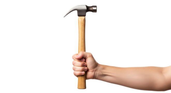 a hand powerfully grips a claw hammer a symbol of strength, construction, and diy projects, isolated on transparent background