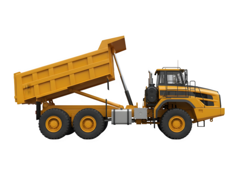Articulated dump truck with the body raised isolated on transparent background heavy construction vehicle
